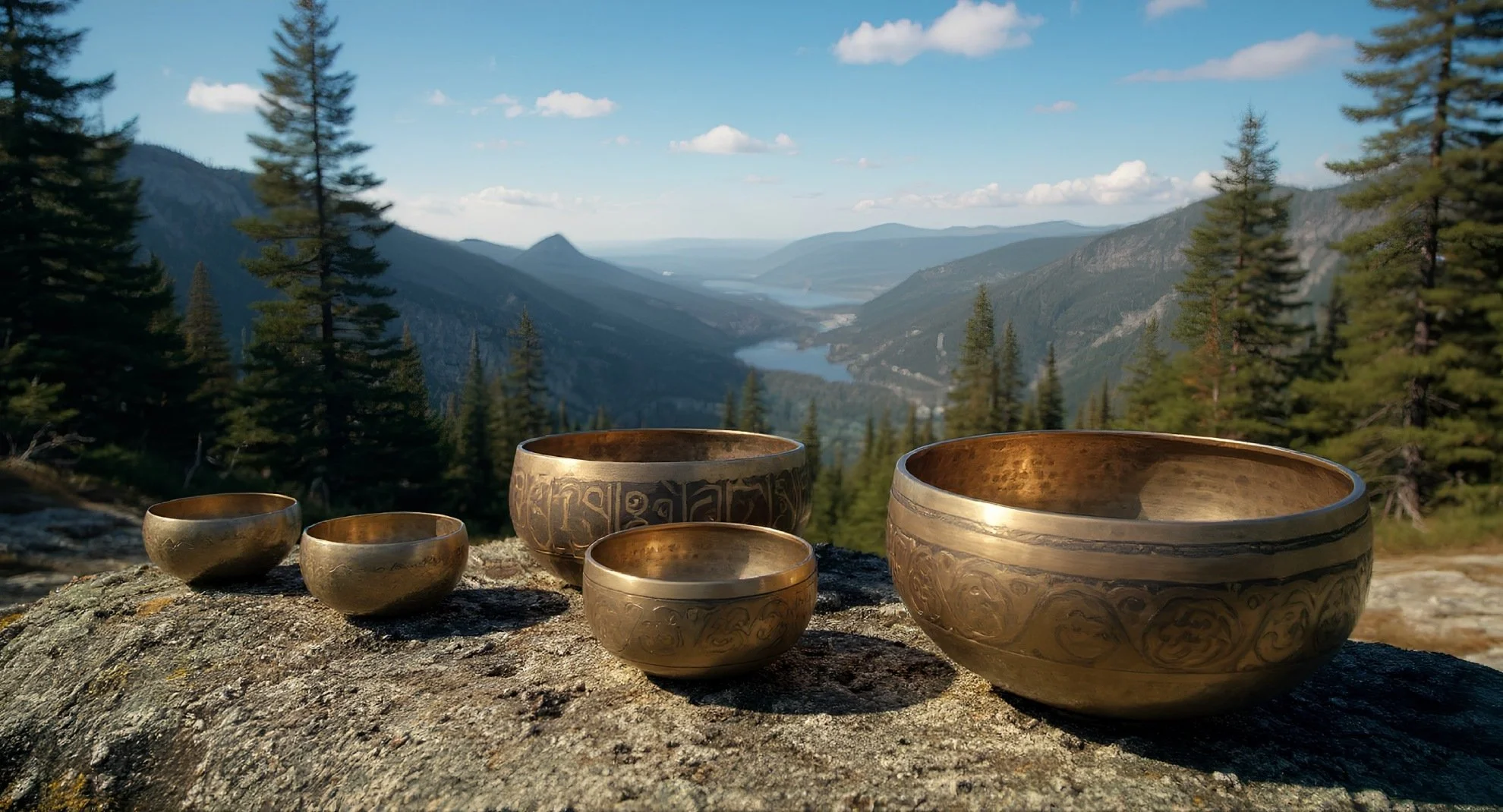 Les sons harmoniques des bols tibétains et des gongs ralentissent les ondes cérébrales, vous guidant vers un état de relaxation méditatif, similaire à celui atteint lors de pratiques de méditation profonde..